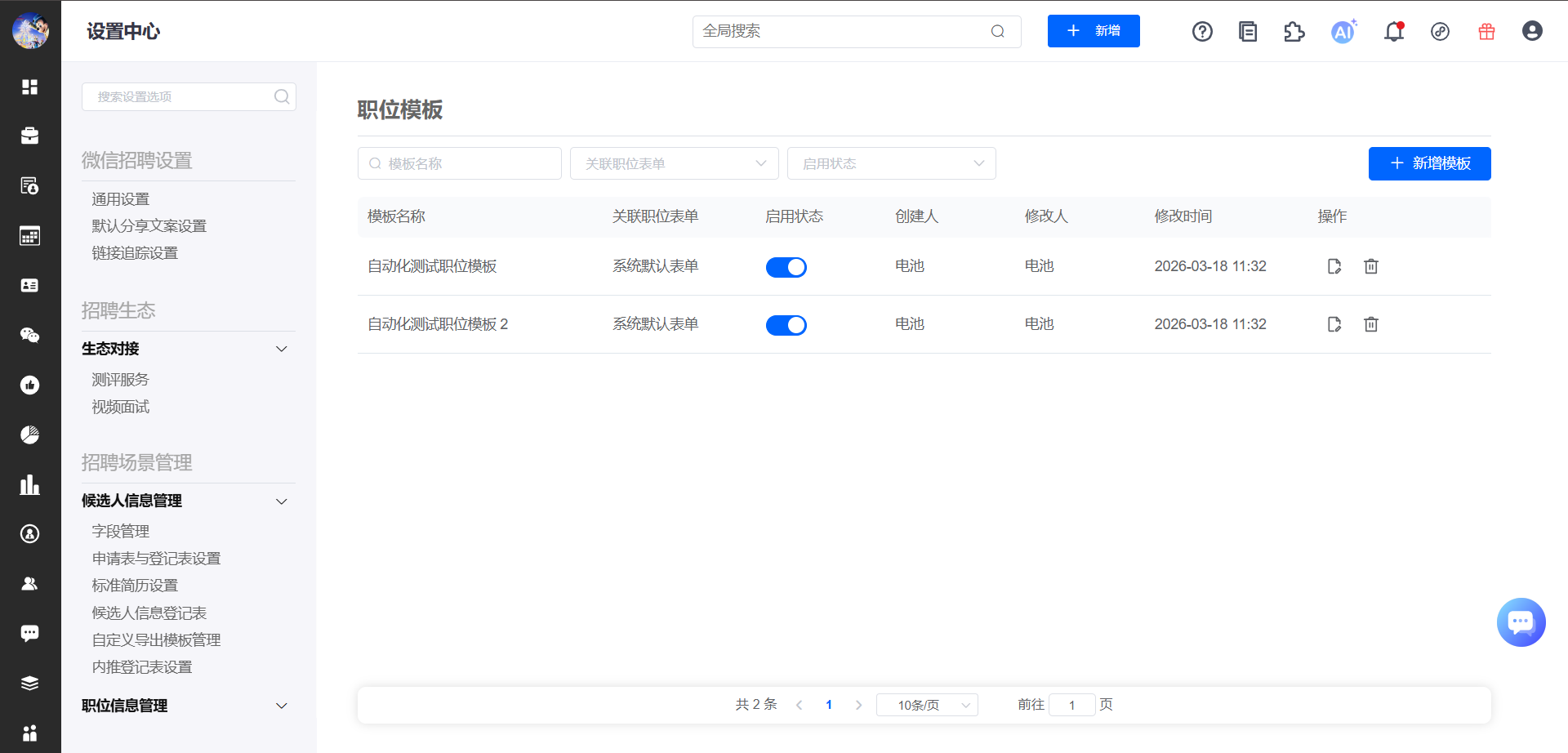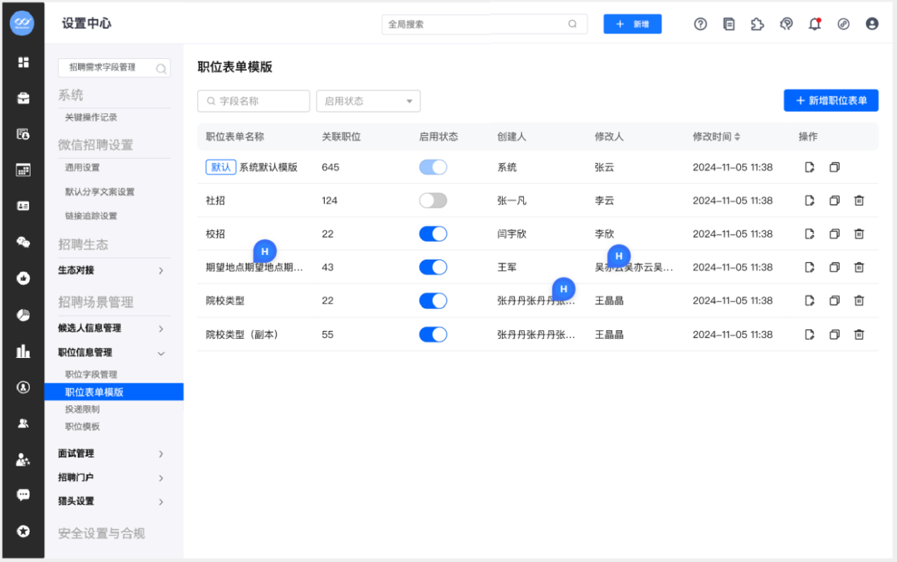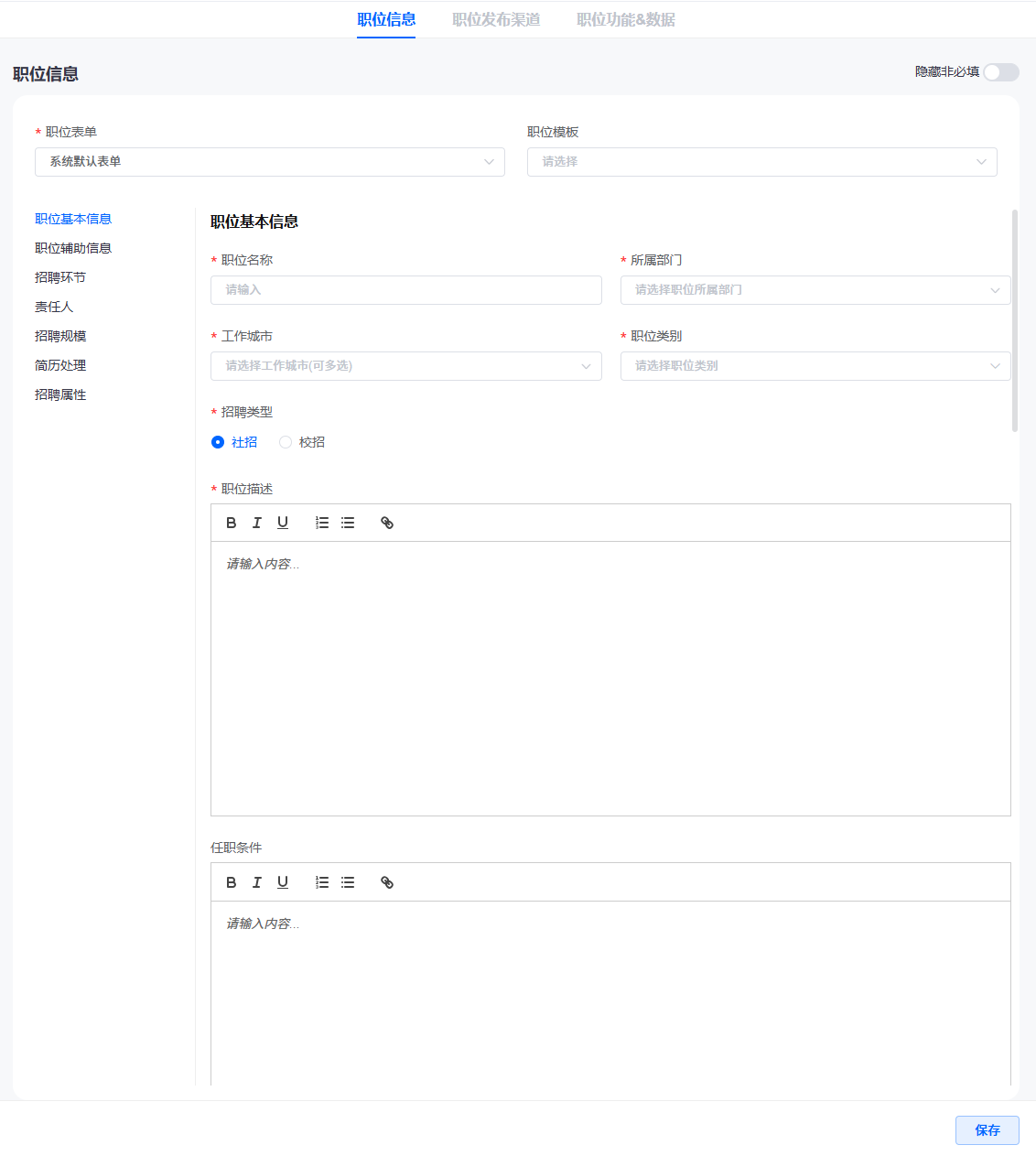 3 | 职位模板 | 针对职位表单中的字段进行预设内容填充,以方便用户创建职位的时候快速填充内容 |