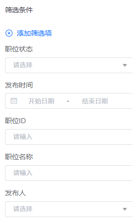 n 职位状态:下拉多选,选项值包括:招聘中、已撤下