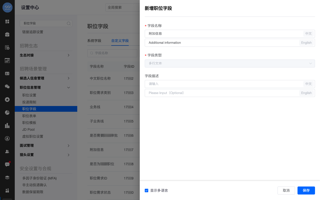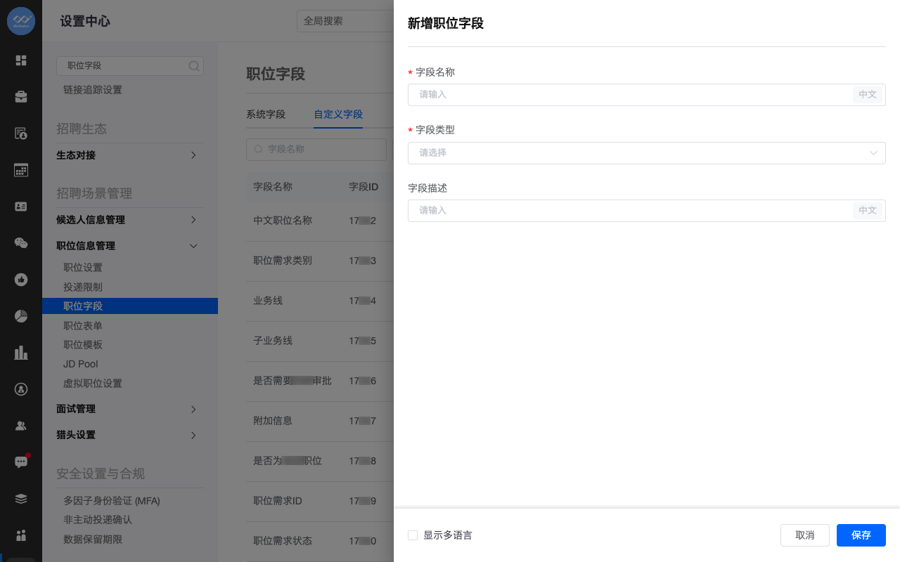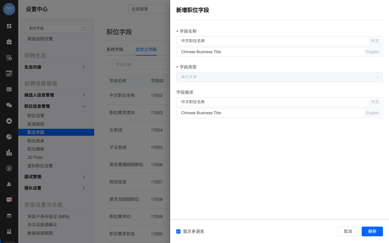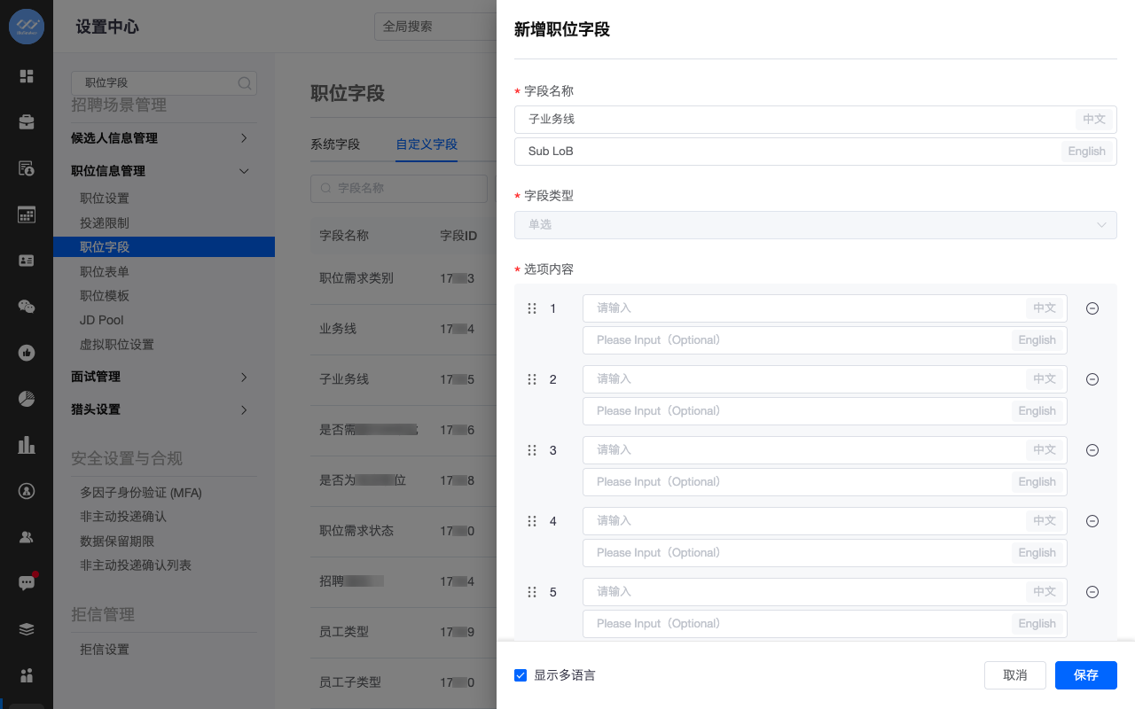 新增职位字段管理