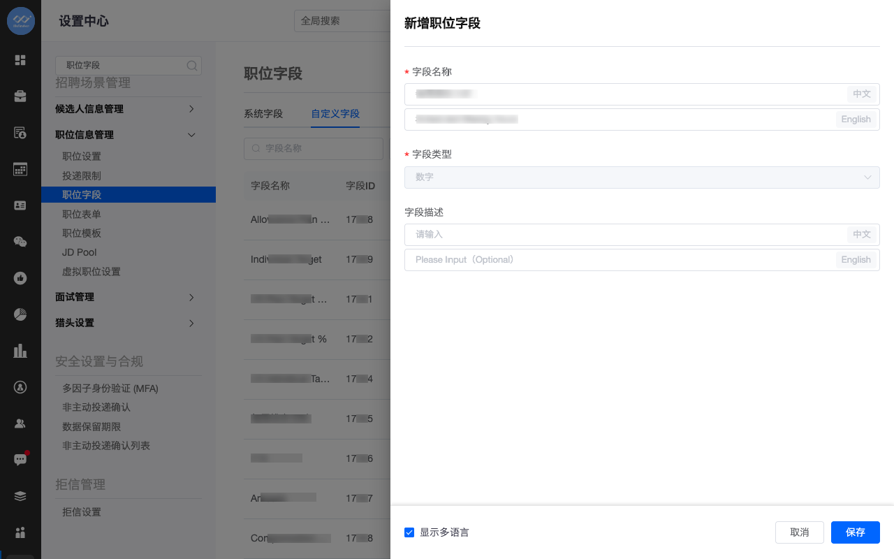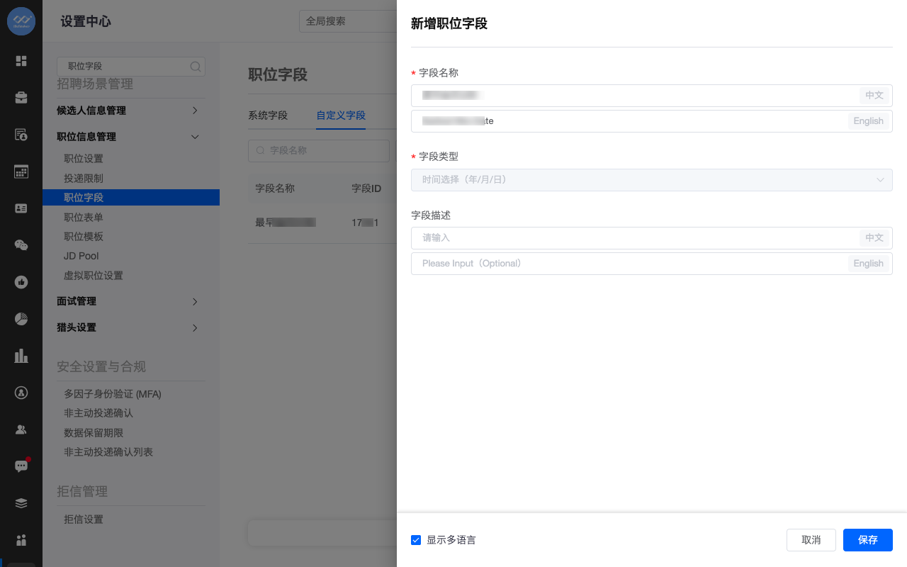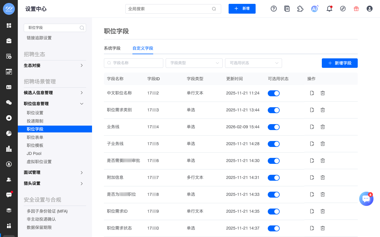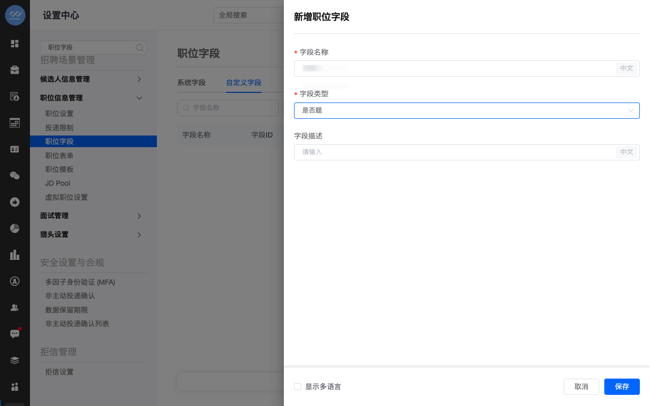新增职位字段管理