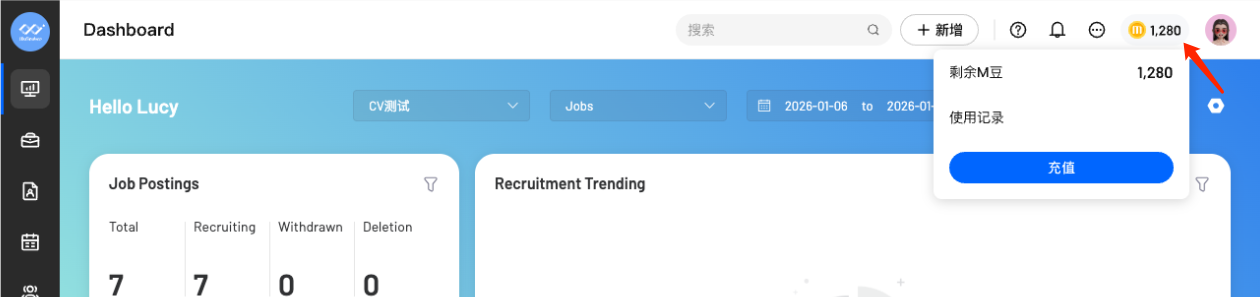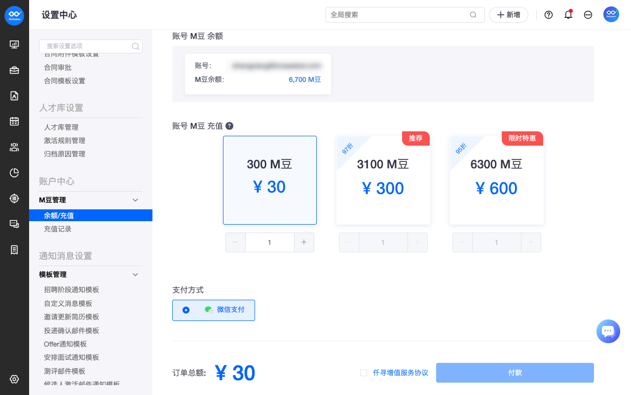 M 豆是仟寻ATS 系统虚拟货币,用户付费充值获取 M 豆额度后,可用于支付 ATS 系统中各项付费功能。